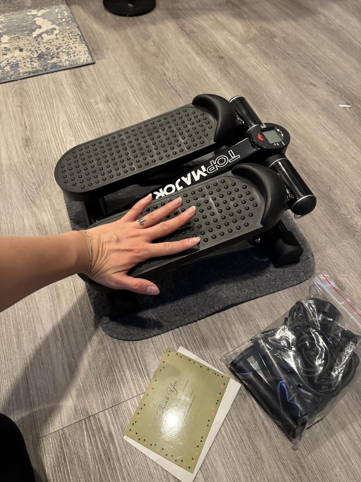 This stepper has helped me stay consistent with exercise. It’s easy to use, doesn’t take up space, and gives me a full-body workout with the bands.